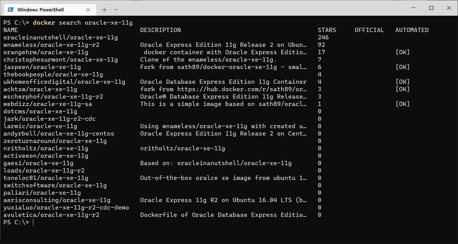 docker search oracle-xe-11g