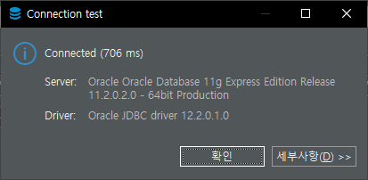 4. 위의 화면 좌측 하단의 'Test Connection...' 버튼을 누르면 정상적으로 연결되는 경우 아래와 같은 화면을 보실 수 있습니다.